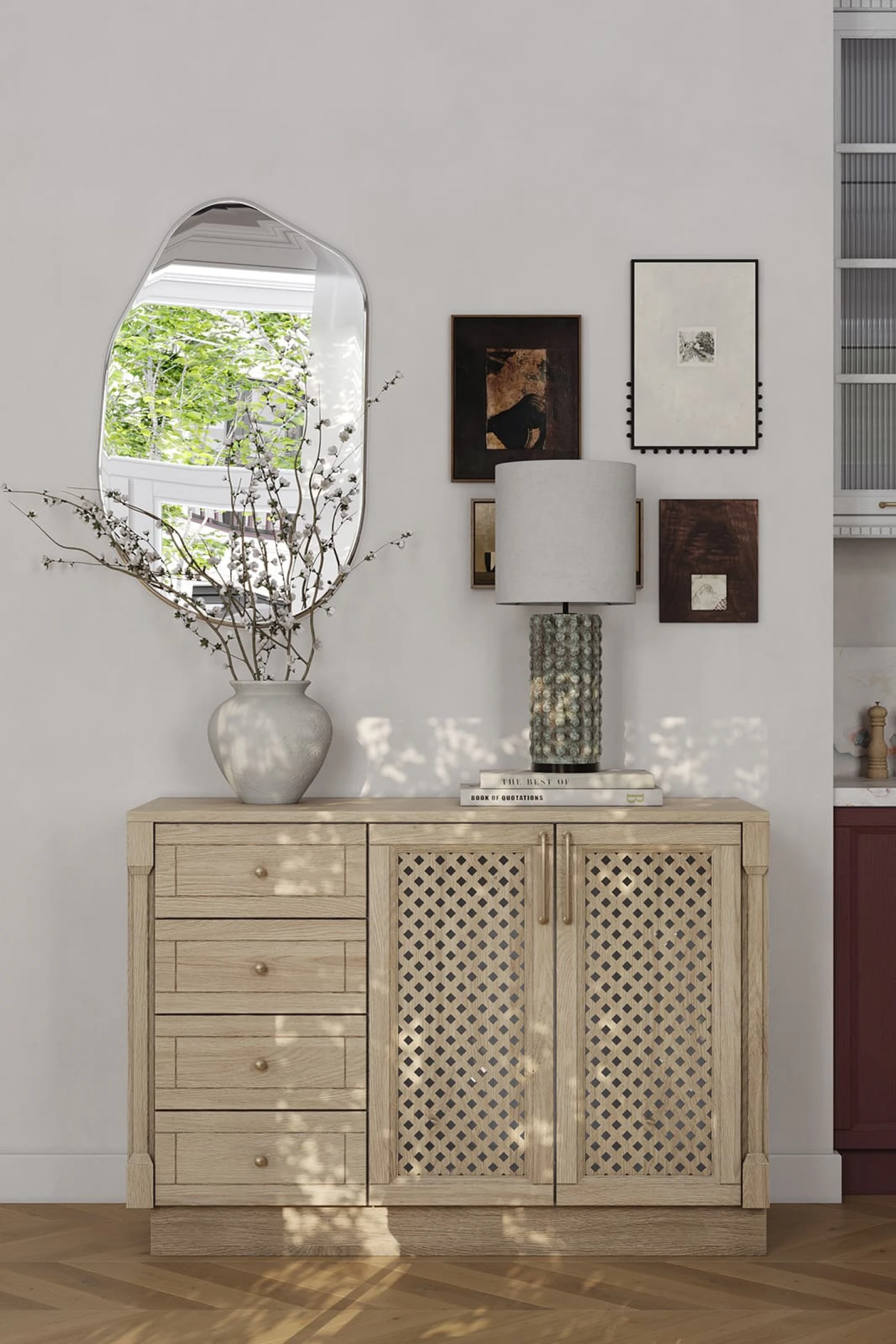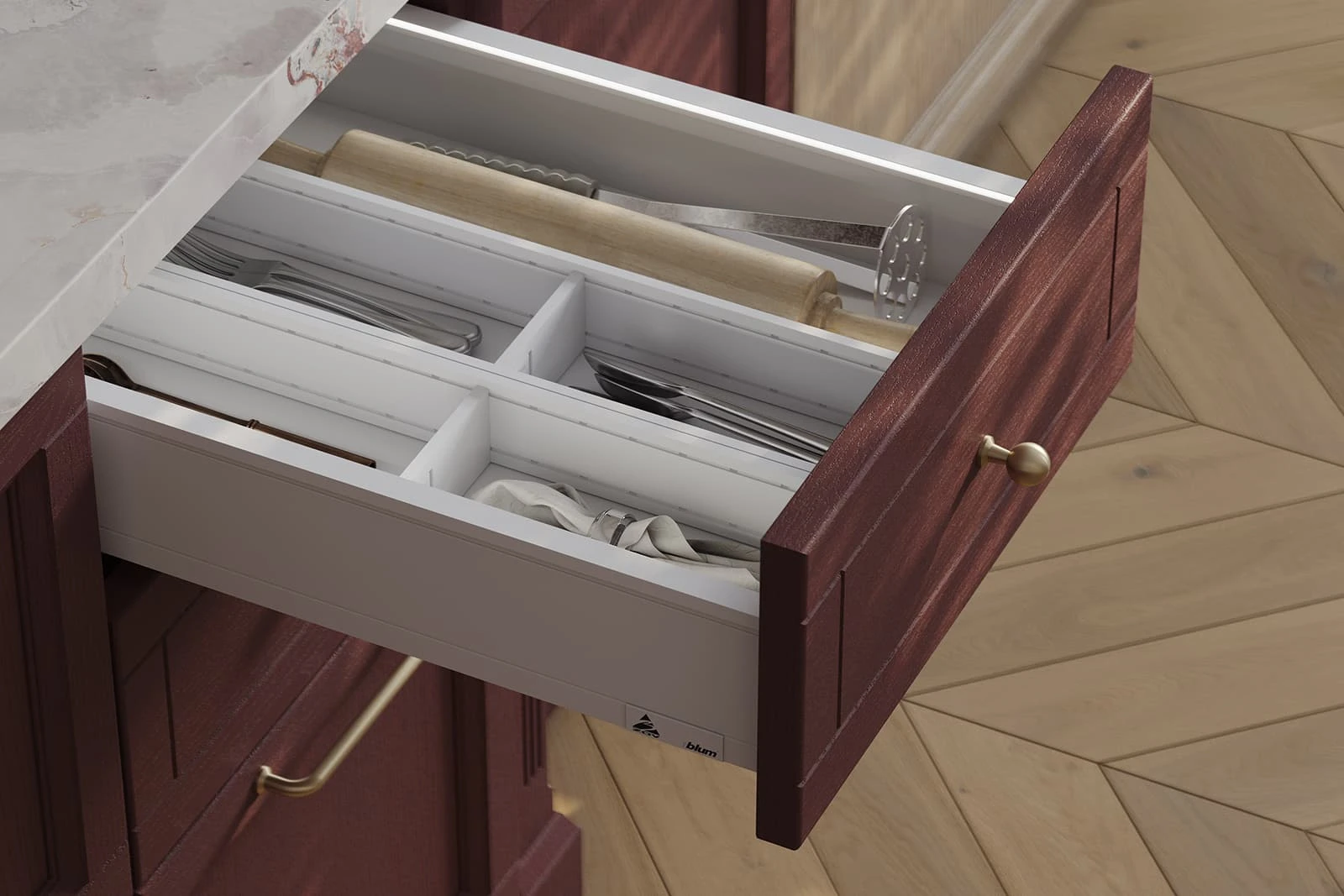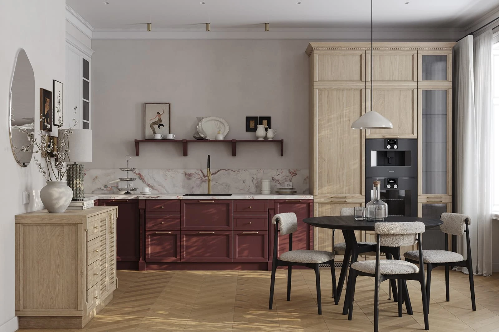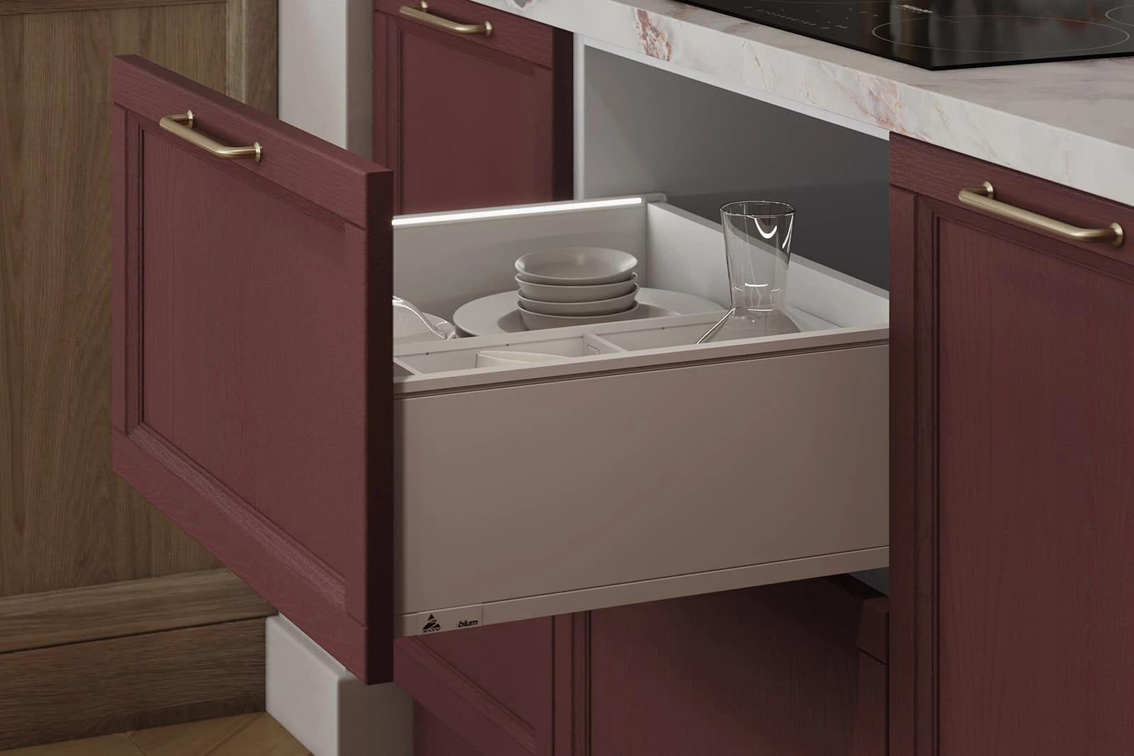 ФАСАДЫ Т761 Натуральный дуб, цвет NCS S 6030-R / #183 (масловоск Бесцветный), СТОЛЕШНИЦА Пластик HPL, 38 мм, декор Версаль