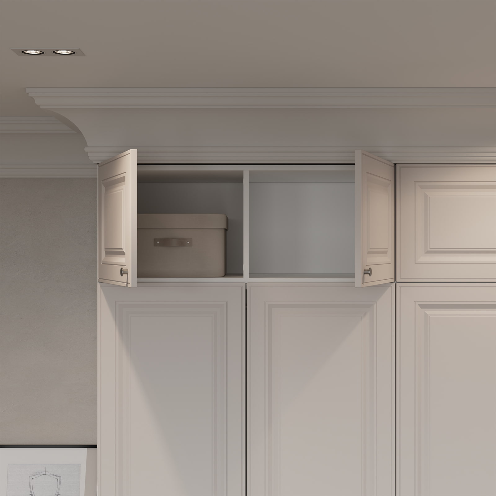 Фасады Блоттс (МДФ/ПВХ), цвет Морской Жемчуг, Корпус ЛДСП, цвет Белый Премиум (толщина 18 мм)