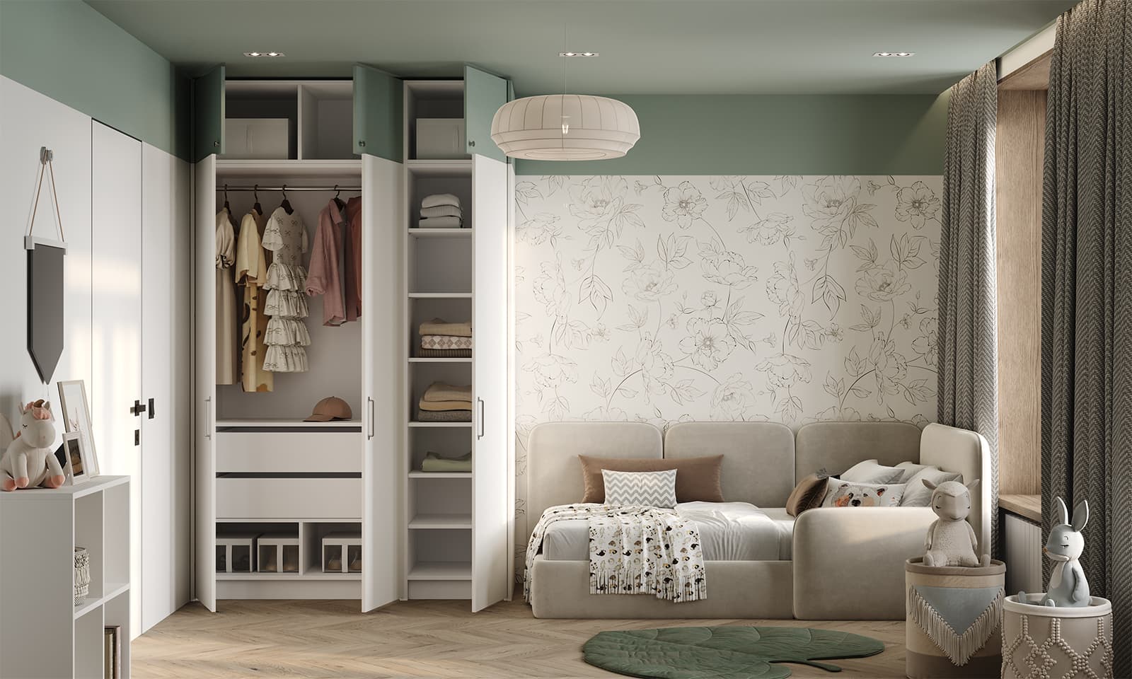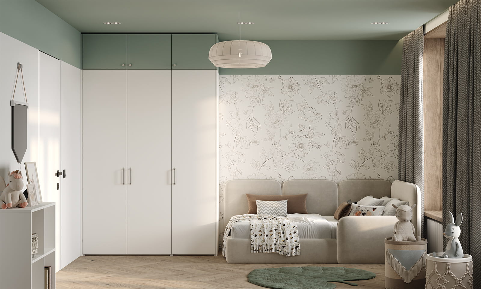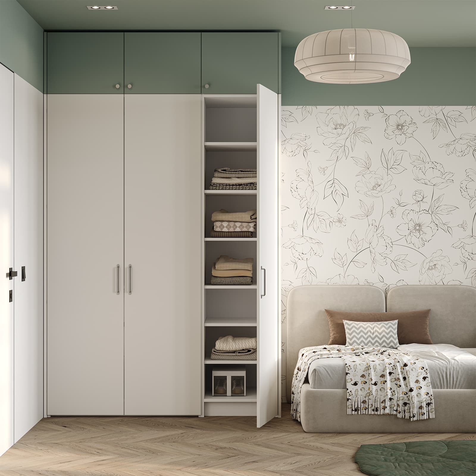 Фасады ЛМДФ EVOGLOSS, цвет Матовый Белый / Матовая Мята, Корпус ЛДСП, цвет Белый Премиум (толщина 18 мм)