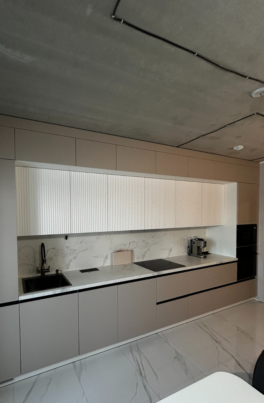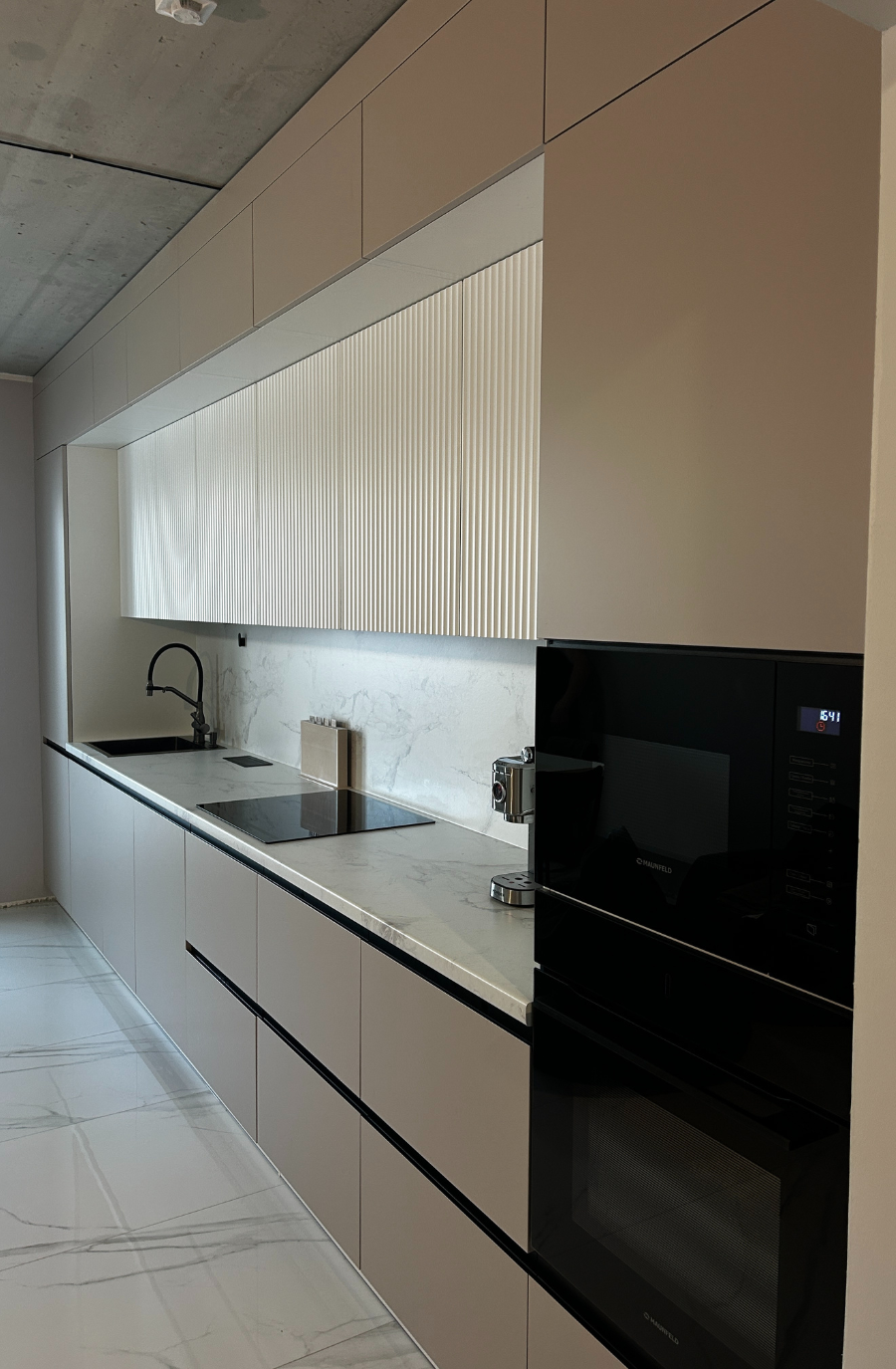 Современная прямая кухня до потолка